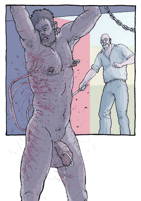 When I get discouraged and tired, they protest and order me not to lose the rhythm or violence of the blows. Many times, I continue even after the Pig has passed out. What surprises me the most is that the animal moans, cries, and goes crazy with so much pain but often ejaculates with so much excitement and pleasure in being so brutally whipped.